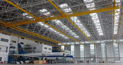 奥力通多支点悬挂起重机和升降平台还广泛应用于国内外飞机机库,比如天津空客A330工厂、北京首都机场AMECO 747/A380、上海浦东机场、广州白云机场GAMECO、中国商飞、成都机场、常州机场、西飞、石飞、厦航机库、澳门机场、揭阳机场、太古日照机库……