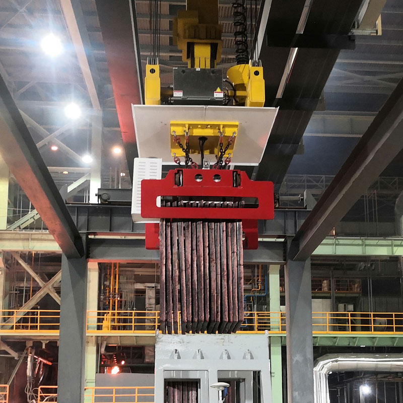 阳极铜自动吊成功交付,为用户进一步提高铜板装运效率,实现阳极铜板的全自动吊运作业,为客户全产线“黑灯工厂“智能制造奠定了基础。