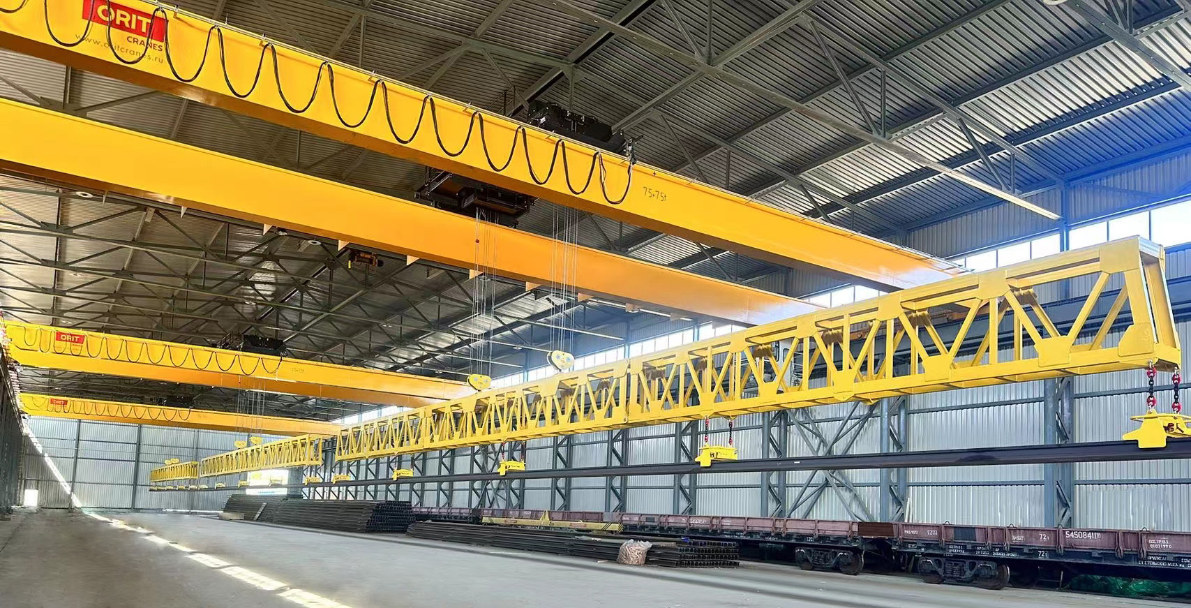 奥力通长轨自动吊,三车联动定位精度高,一次性起吊多根几百米长的超长轨道,实现所有钢轨同步抓取、同步卸货,作业效率高、用工成本低。
