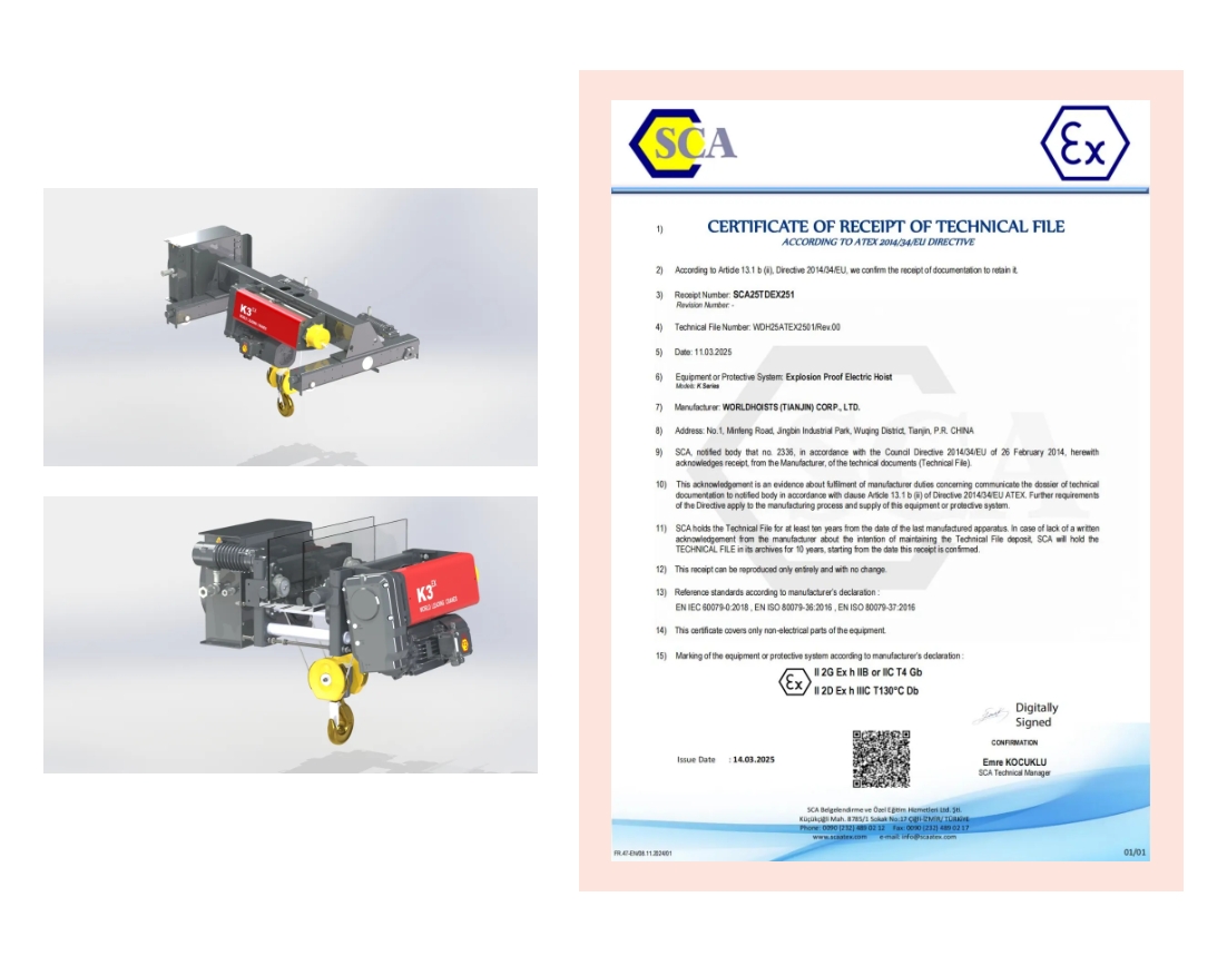 ATEX认证不仅是欧盟市场的准入标准,更被中东、东南亚等地区广泛采信。这一认证的获得,将助力必一运动官网快速进入欧洲化工、石油、制药等高附加值行业,为全球客户提供更安全、更可靠的起重解决方案。