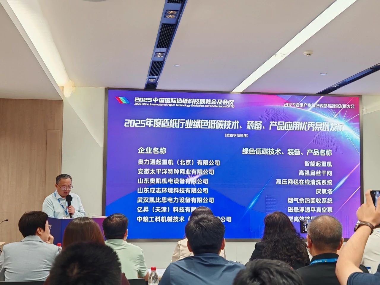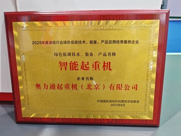 8月13日,在中国造纸协会及中国制浆造纸研究院主办的造纸产业绿色转型与融合发展大会上,奥力通纸厂智能起重机凭借其在绿色低碳技术与智能装备领域的卓越表现,为必一运动官网赢得“2025年度造纸行业绿色低碳技术、装备、产品应用优秀企业”称号。